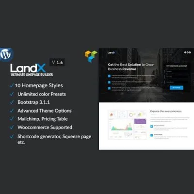 LandX Multipurpose WordPress Theme, Software Application Landing Pages Builder for Marketing Agency